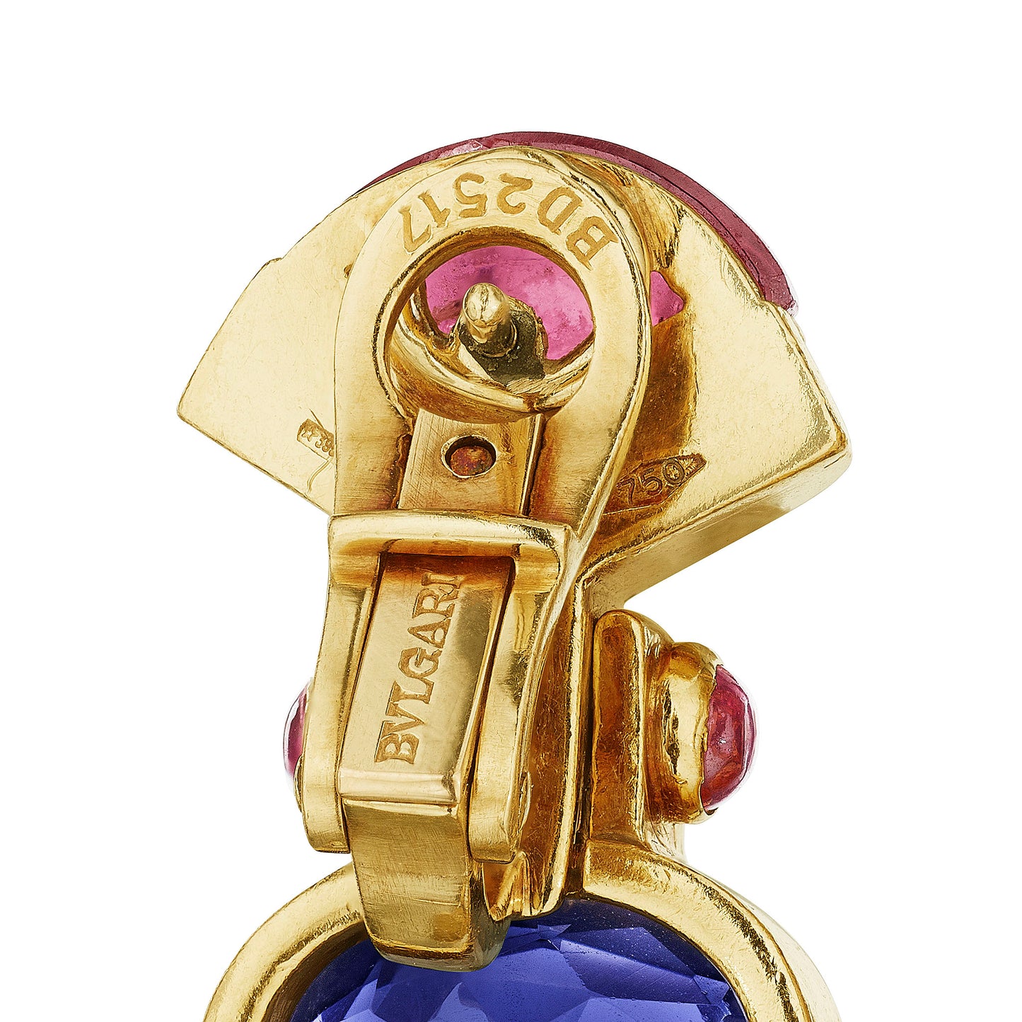 Bulgari Pink Tourmaline, Iolite and Ruby Earrings