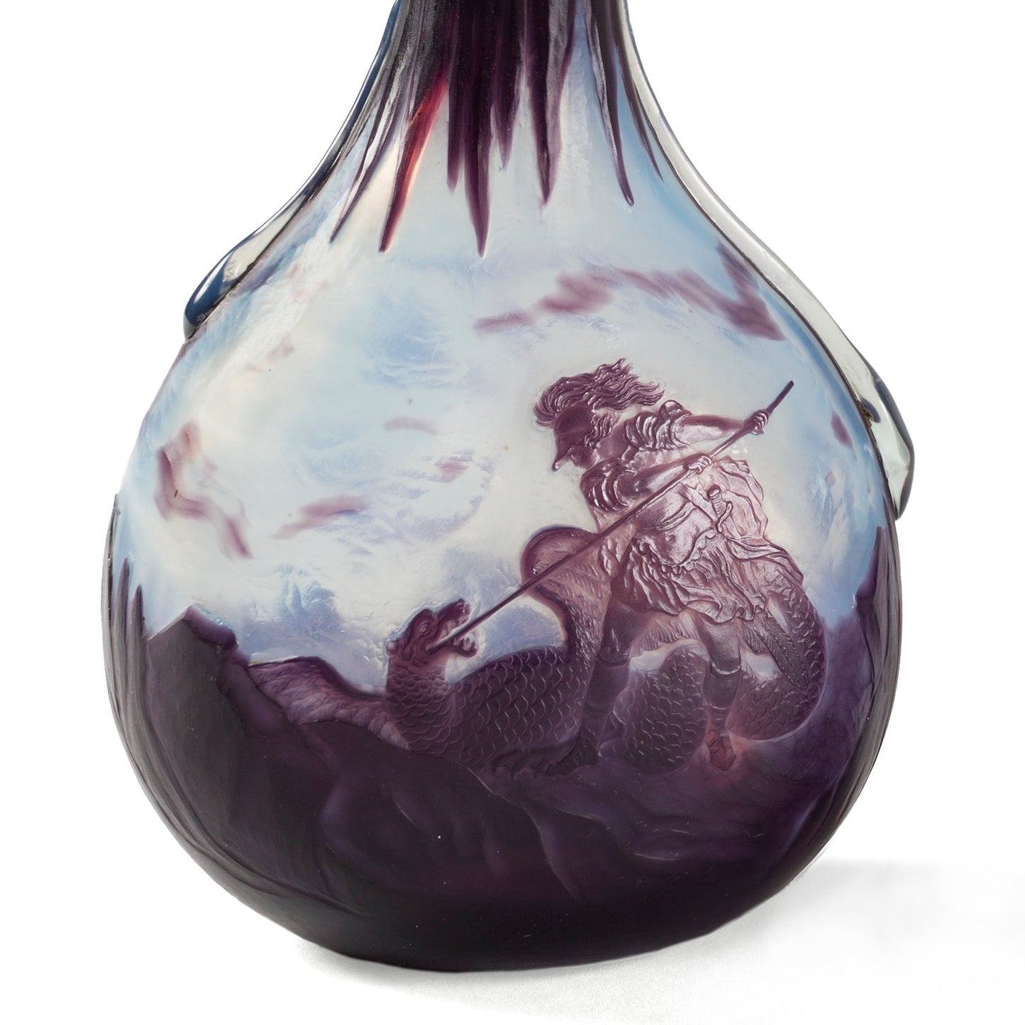 Louis Damon pair of "Vase of Triton" & "Vase of Saint George Slaying the Dragon," Cameo Glass Vases