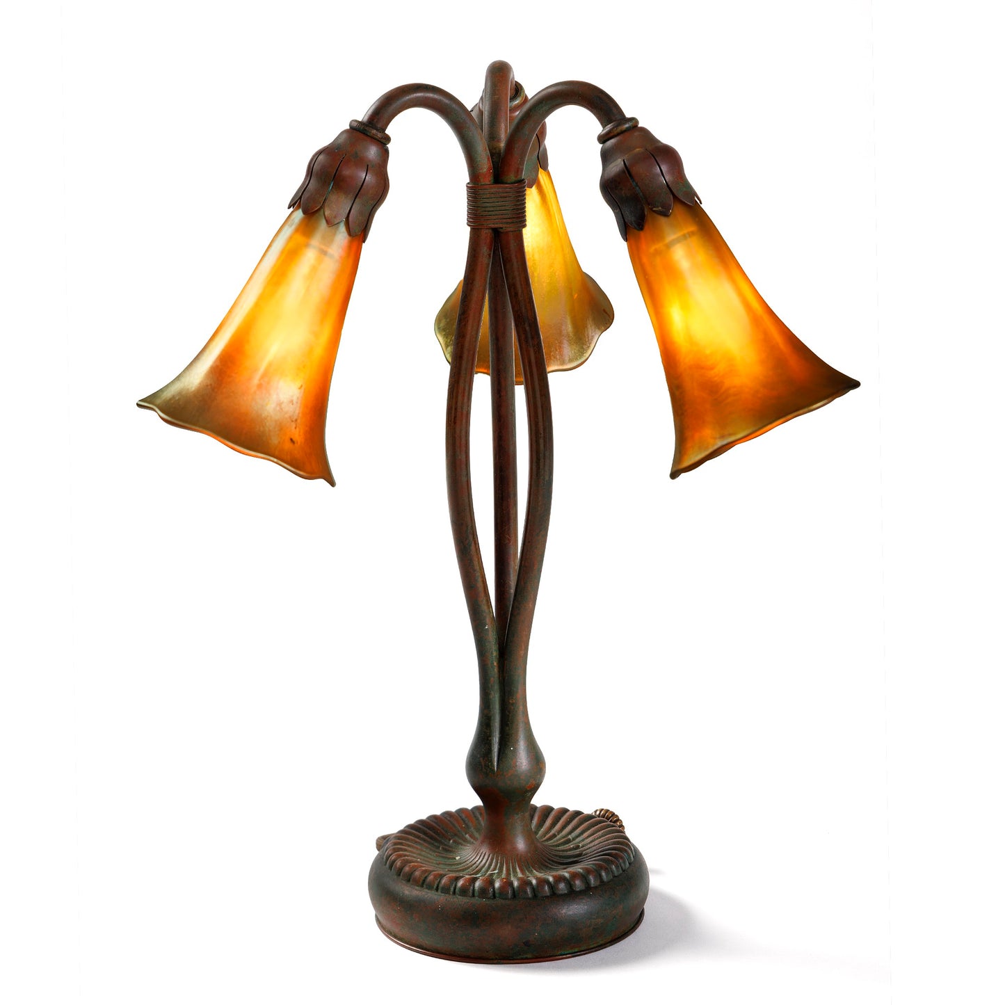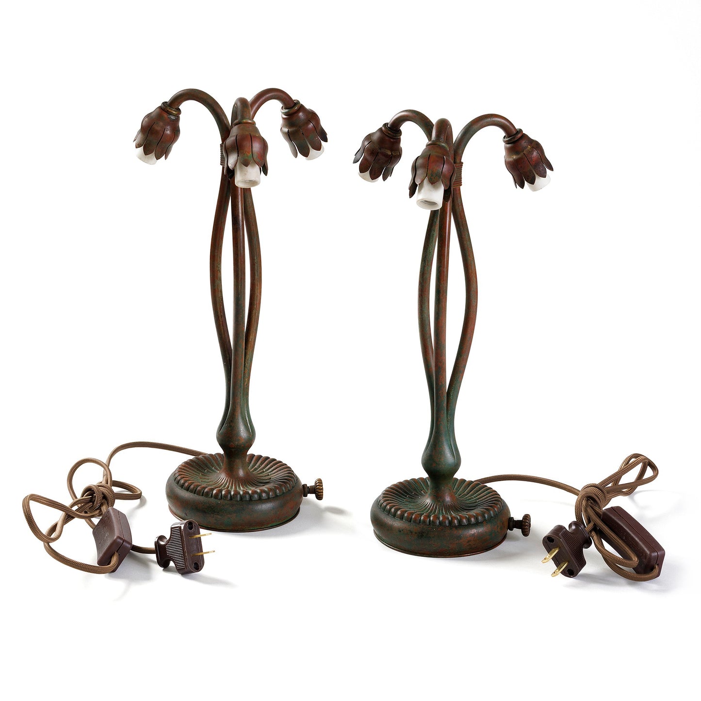 Tiffany Studios New York Pair of "Three-light Lily" Desk lamps