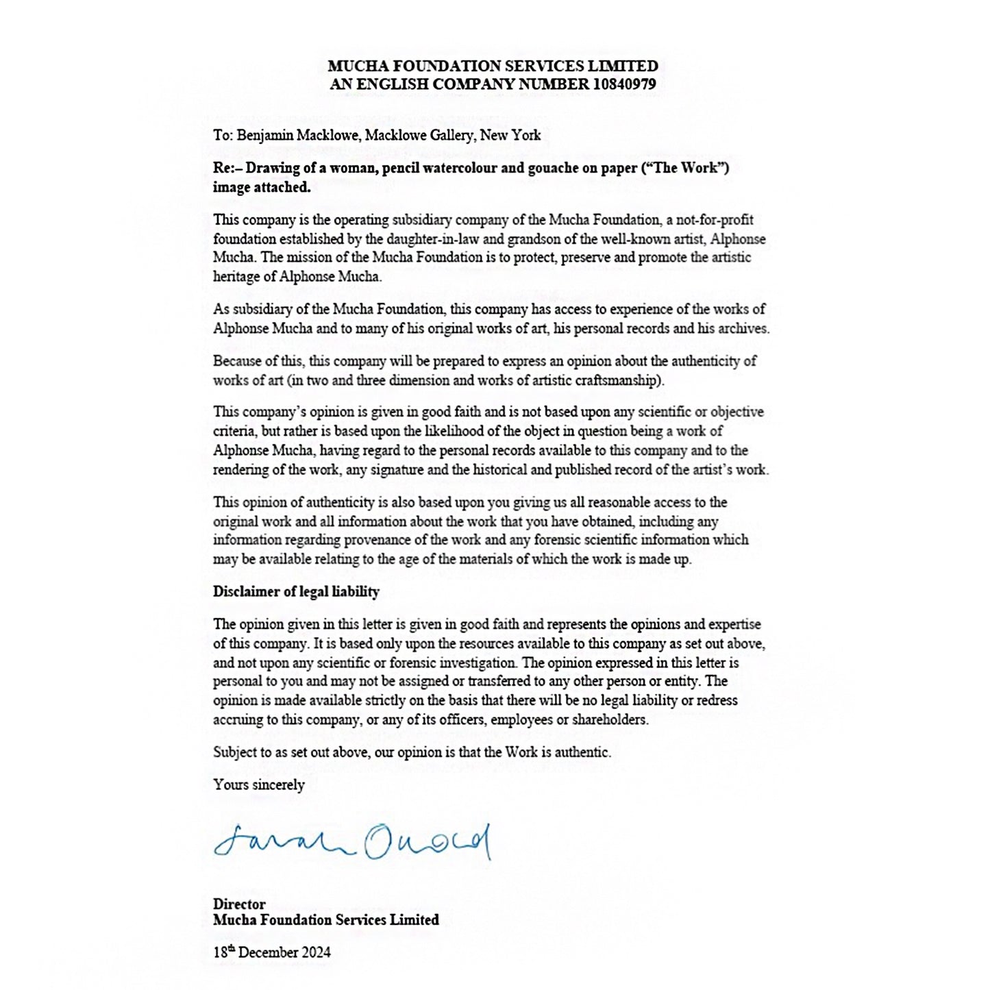 Documentation: Accompanied with Certificate of Authenticity from the Mucha Foundation