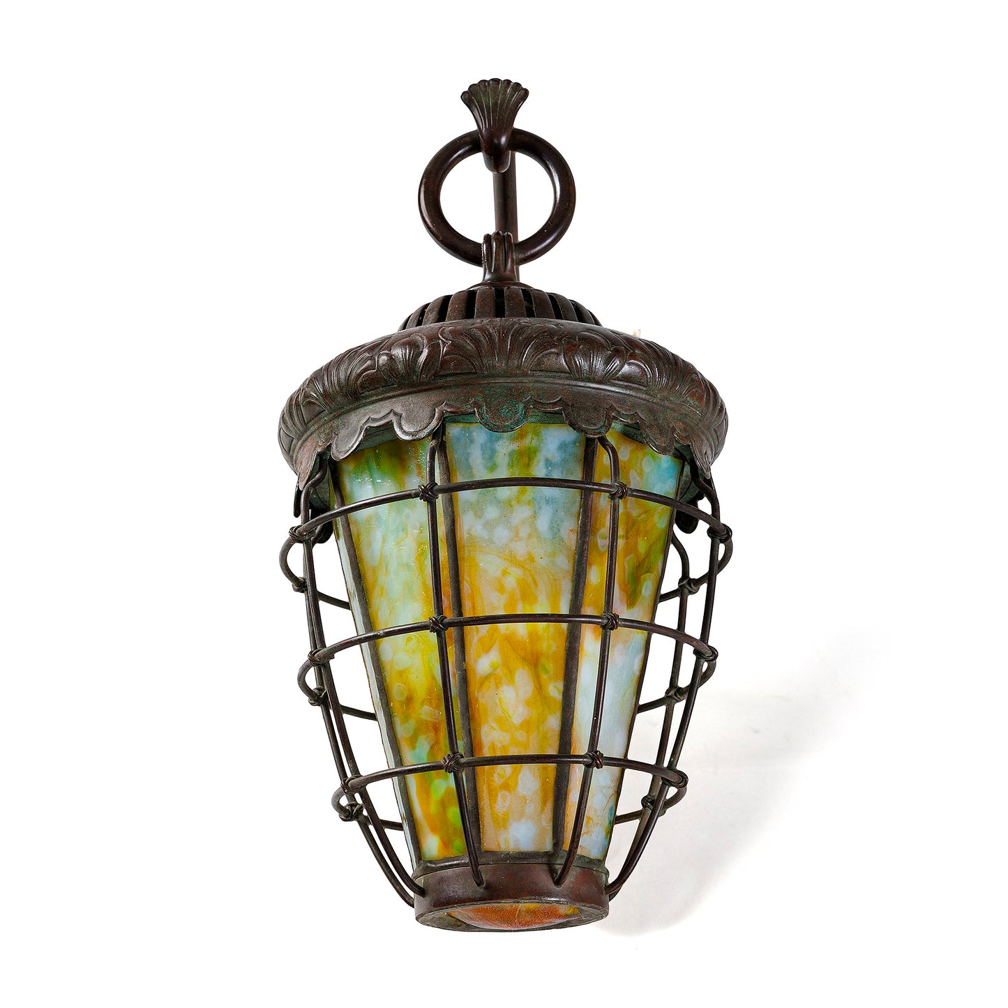 Tiffany Studios New York Pair of "Caged Lantern" Sconces